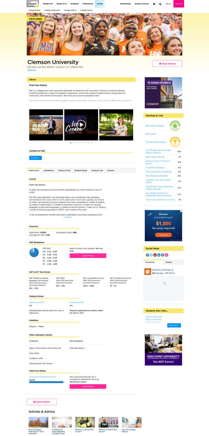 - Enhanced School Profiles: Stand out with enriched content that highlights your programs and campus experience.